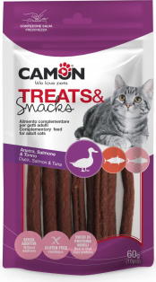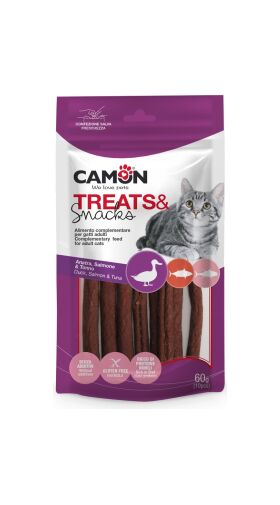 Camon Дополнительный корм для взрослых кошек - палочки из утки, лосося и тунца, 60 гр.