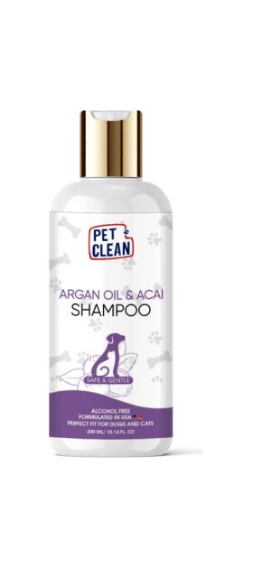 Шампунь Pet Clean Acai Berry and Argan Oil с ягодами асаи и аргановым маслом, специально разработанное для оказания омолаживающего и питательного воздействия на кожу и шерсть домашних питомцев.