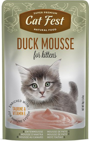 Catfest Cat Fest Kitten duck meat mousse kons., 70 г — влажный прикорм с утиным мясом с нежной муссовой текстурой, идеально подходит для маленьких котят.