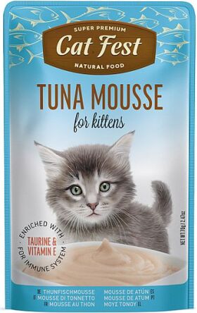 Консервы Cat Fest Kitten с тунцом, 70 г — влажный прикорм с тунцом, мягкая пенистая текстура, идеально подходит для маленьких котят. Состав: тунец 58%, рыбный бульон 39,9%, анчоусный рыбий жир, пребиотик ФОС, витамин Е, таурин, тапиока, экстракт цикория, фруктоза, минералы. Аналитические компоненты: сырой протеин 10%, сырой жир 0,8%, сырая клетчатка 1%, сырая зола 1,5%, влажность 89%, энергетическая ценность — 41,96 ккал. Применение: Идеально подходит для ежедневного дополнительного питания котят всех пород. Подавать при комнатной температуре. Хранить в сухом прохладном месте. Рекомендуется давать 2–3 пакетика в день в зависимости от возраста и уровня активности котенка. Обеспечить доступ к свежей воде. |