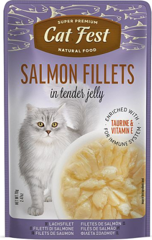 Филе лосося в желе Cat Fest, 70 г - полноценный корм для взрослых кошек, дикий лосось в желе, нежный и питательный корм.