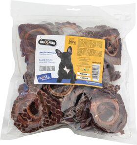 Кольца ягненка с трахеей HAU & MIAU, 500 г - дополнительный корм для взрослых собак, кольца ягненка с трахеей. Состав: ягненок (52%), говяжья трахея (40%), картофельный крахмал, соль, сорбит. Технологические добавки: консерванты. Аналитические составляющие: сырой протеин 38%, сырая клетчатка 1,0%, сырой жир 3,6%, сырая зола 3,2%, влажность 18%. Служат лакомством или поощрением при дрессировке. |
