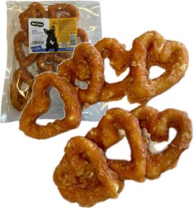 Дополнительное питание для собак HAU & MIAU - сыромятные сердечки с куриным мясом 10 см, 500 г