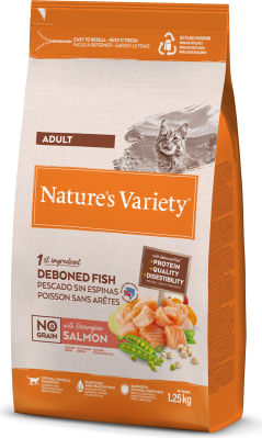Natures Variety NV Cat No Grain Adult Norwegian Salmon 1,25 кг — полнорационный корм для взрослых кошек.