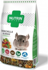 NUTRIN NATURE CHINCHILLA & DEGU Pilnvērtīga barība šinšilām un degū. Unikāla receptūra NUTRIN zīmola filozofijas garā. Augstas kvalitātes un ar lielisku garšu barība, ko dzīvnieki patērē pilnīgi bez atlikumiem un kas pilnībā apmierina viņu uztura vajadzības. Bez krāsviel., konservantiem vai mākslīgām piedevām. Sastāvs: augu izcelsmes blakusprodukti (FOS-inulīna cigoriņi 240mg/kg, Yucca Shidiger 220mg/kg), graudaugi, dārzeņi, sēklas, augļi, raugs, augu izcelsmes olbaltumvielu ekstrakti, minerāli, eļļas un tauki. Sastāvdaļu % daudz.: Kopproteīns 13%, kopeļļas un koptauki 2.5%, kopšķiedra 14%, koppelni 6%. Piedevas uz 1kg: Uzturfiziol.: vitamīni: vit.A (3a672a) 20 000 SV, vit.D3 (3a300) 1000 SV, vit.C (3a300) 200mg, vit.E (3a700) 100mg. Aminoskābes: DL-metionīns (3c301) 360mg, L-lizīns (3.2.3.) 240mg. Emulgatori: lecitīns (E 322) 600mg; Antioksidanti. Dienas deva: Barojiet pēc vajadzības, var papildināt racionu ar zaļbarību, sauso rupjo lopbarību, svaigiem augļiem un dārzeņiem. Pārtikas atlikumus jānovāc. Nodrošiniet ar dzeramo ūdeni un sienu. Glabāt: sausā, vēsā vietā. Derīg. termiņu, part. Nr., neto svaru: skatīt uz iepakojuma. Ražotājs: Nutrin s.r.o.,Cz |