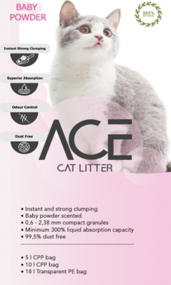 ACE Baby Powder CAT LITTER 10 LT - цементирующийся наполнитель для кошачьего туалета с детской пудрой, 10 л