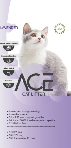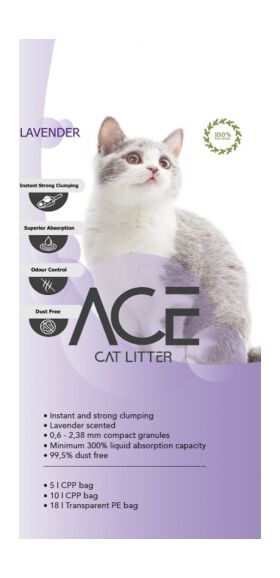 ACE Lavender CAT LITTER 20 LT - цементирующийся наполнитель для кошачьего туалета с лавандой 20 л