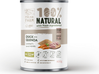 PF Fresh Farm DOG Coarse pate - утка, киноа, морковь и зелень 400 г - полноценный влажный корм, паштет грубой консистенции, мясо утки, киноа, морковь и зелень 400 г. СОСТАВ: 25% мяса утки, 25% мяса курицы, 8% киноа, 8% морковь, 2% яблоки, 1% смеси трав, 1% лососевого масла, 1% петрушки, 0,5% льняного семени, 0,2% водорослей. ДОБАВКИ/кг: Витамин D3 (E671) 200 МЕ, Витамин E (3a370) 150 мг, Цинк (3b610) 15 мг, Марганец (3b510) 3 мг, Карбонат кальция 2 мг. АНАЛИТИЧЕСКИЙ СОСТАВ: сырой протеин 8%, жир 7%, сырая зола 2,2%, влажность 75,0%, сырая клетчатка 0,7%, кальций 0,3%, фосфор 0,2%, натрий 0,4%. |