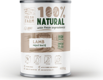Паштет PF Fresh Farm Smooth с бараниной 400 гр - полнорационный продукт, паштетообразные консервы с бараниной. СОСТАВ: баранина 31%, курица 22%, батат 4%, гороховая мука 5%, рис, лососевое масло 0,5%. ДОБАВКИ/кг: витамин Д3 (Е671) 200 МЕ, вит. Е (3a370) 150 мг, цинк (3b610) 15 мг, марганец (3b510) 3 мг, карбонат кальция 2 мг. АНАЛИТИЧЕСКИЙ СОСТАВ: сырой протеин 8%, сырой жир 6%, сырая зола 3%, влажность 78%, сырая клетчатка 0,5%, кальций 0,1%, фосфор 0,3%, натрий 0,2% |