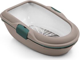 Быстро и легко чистящийся кошачий туалет с решеткой, которая позволяет просеивать грязный наполнитель от чистого; Решетка подходит как для мелкого, так и для крупного наполнителя. Решетку-сито можно прикрепить к туалету с помощью зажимов.